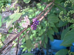 紫珠:樹型繁茂的紫珠開始開花及結出紫色珠珠囉,目前三吋盆都很高,換盆後立即就大一號囉!2006.6.26